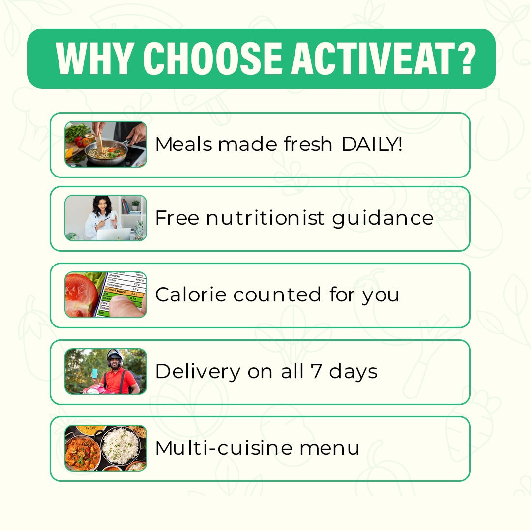 Click on the register button on our homepage and become a part of the ACTIVeat family! Choose your plan and duration. Or contact us directly via info@activeat.in or 9833011895 for more information